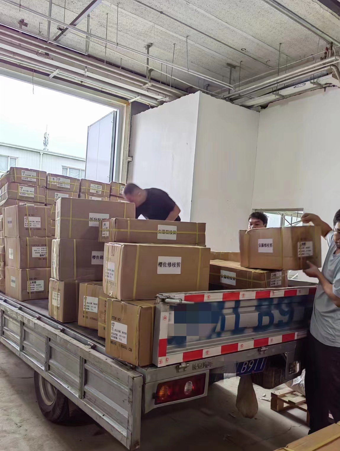 工具到貨,為盡快完成供貨,濰坊綠友的同事們一件件、一箱箱卸到庫房,根據每個鎮的需求,按型號按數量分裝、核對,為打藥機加注機油以便客戶使用。汗水模糊視線、打濕衣襟,卻毫不影響同事們的工作勁頭。