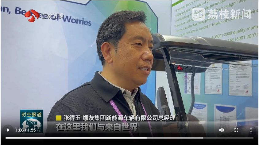 江蘇衛視電視臺,采訪綠友集團新能源車輛有限公司總經理張得玉先生,他講到:在這里我們與來自世界的100多個國家和地區的采購商,面對面交流,這種深度的互動溝通,讓我們迅速捕捉到國際市場的最新變化。