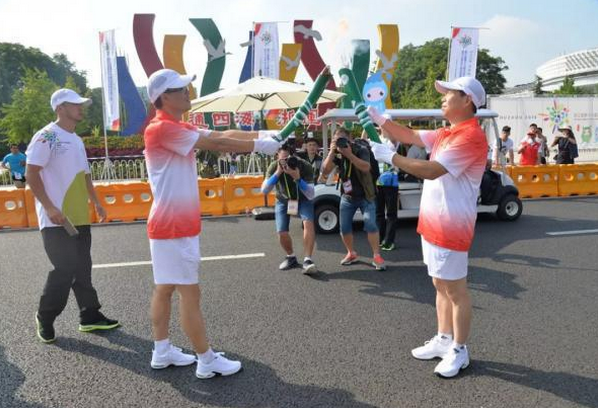 8月8日上午,浙江省第十六屆運(yùn)動(dòng)會火種匯聚·火炬?zhèn)鬟f暨2018年浙江省全民健身日主會場活動(dòng)啟動(dòng)儀式在湖州市民廣場舉行。