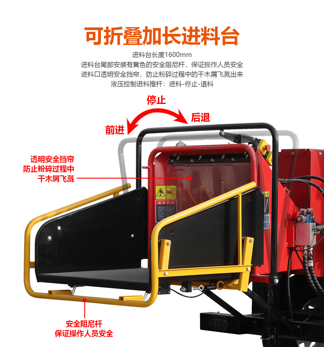 25cm全自動液壓進料粉碎機,選用49馬力環保柴油發動機。